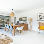 Gli ospiti possono cenare in un angolo cottura attrezzato, oltre che in una zona pranzo all'aperto, disponibili nella struttura. Gli ospiti possono inoltre usufruire di un bollitore elettrico, un frigo e una vetreria per preparare i propri pasti. Gli ospiti possono cenare al ristorante Brasserie de la Plage, situato a a breve distanza dalla villa. L'aeroporto di Tolone-Hyères si trova a 30 km di distanza, mentre la stazione degli autobus Pins Penches è abbastanza vicino a questa villa.